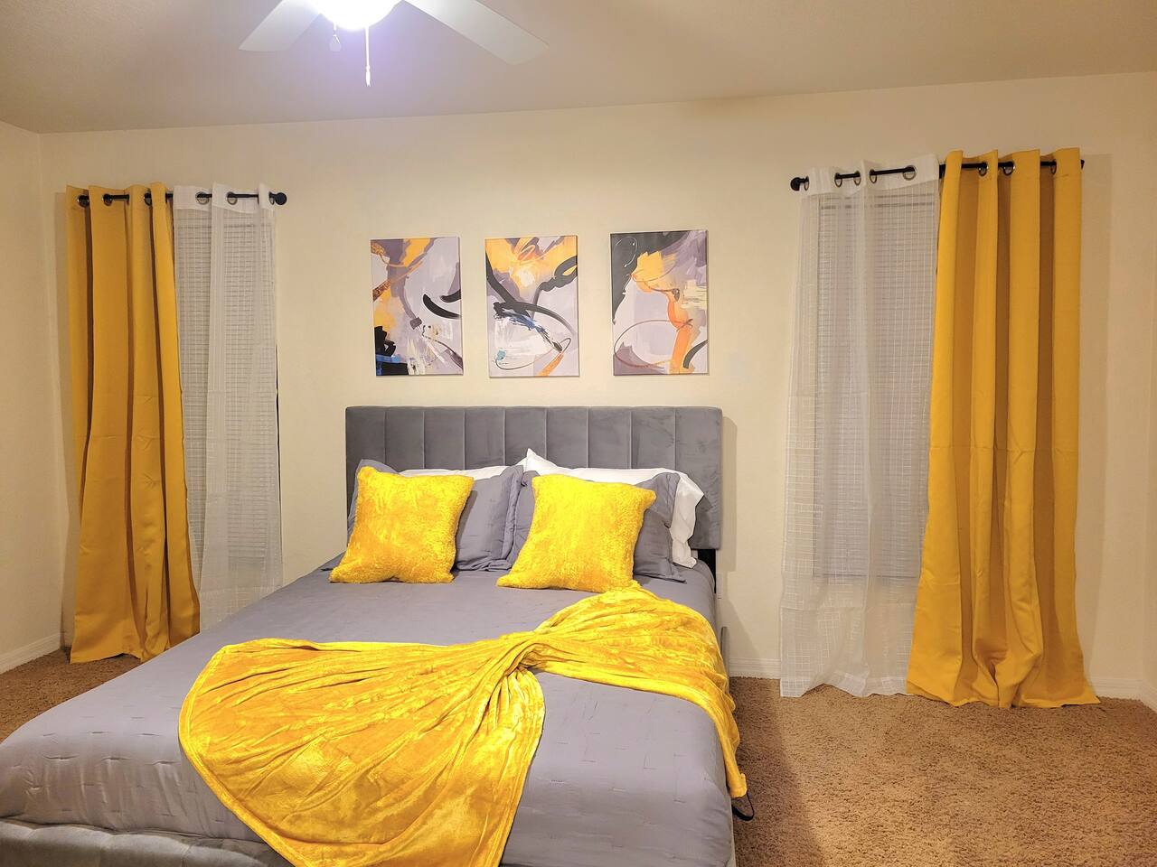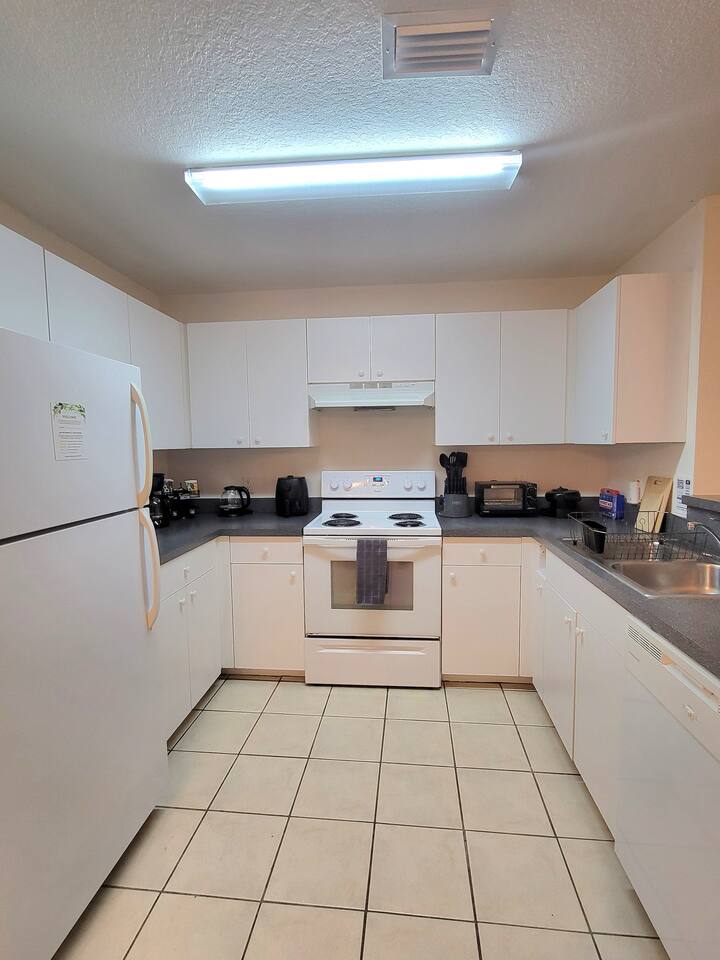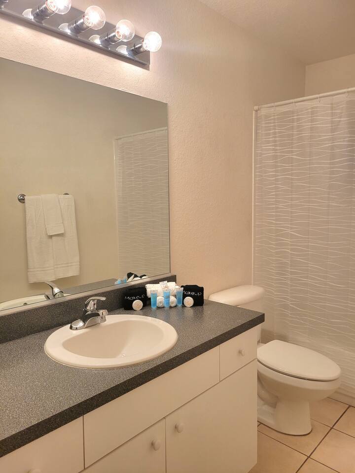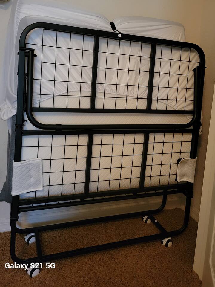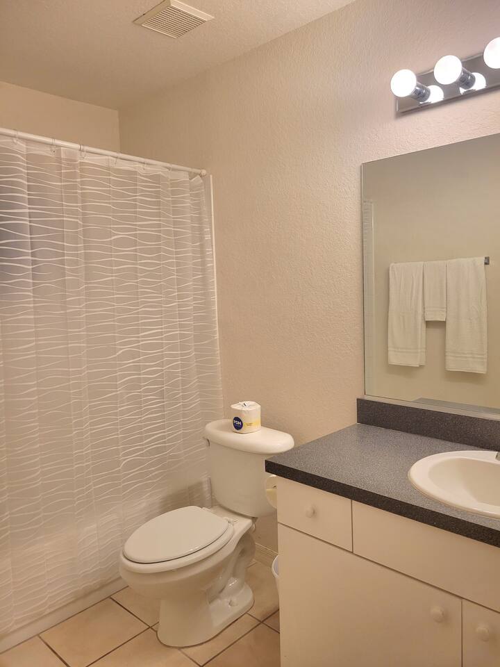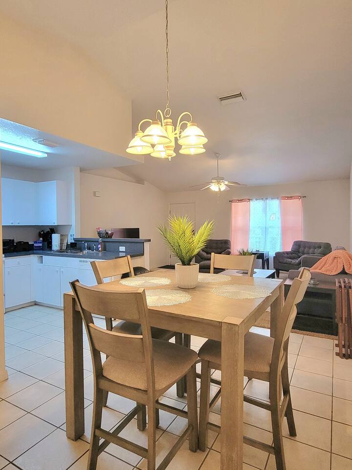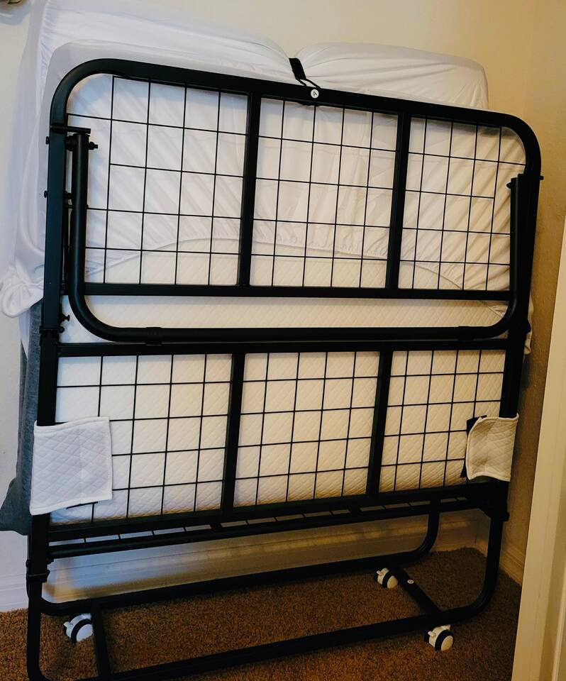 The comfortable space in this duplex home creates a cozy place for business or pleasure for couples, families, or those traveling for work! Relax in the living room or plan a game night with the family or cook your favorite meal in our fully-equipped kitchens! Both master suites include a comfortable queen-size bed and private bathroom. Just down the hall, you’ll find another full bathroom and second bedroom with a queen-size bed. Also provided are 4 full-size folding beds in each unit for additional sleeping spaces. Bring a portable grill so that when you’re not sight-seeing or working, you can enjoy the roomy backyard! PARKING - A total of 4 parking spaces in the driveway also allows for convenient access.